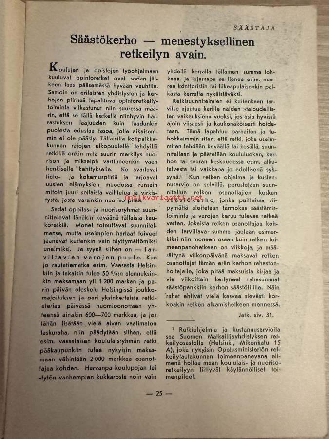 Säästäjä 1948 nr 2 -säästöpankkien asiakaslehti, artikkeleita, sarjakuvia yms.