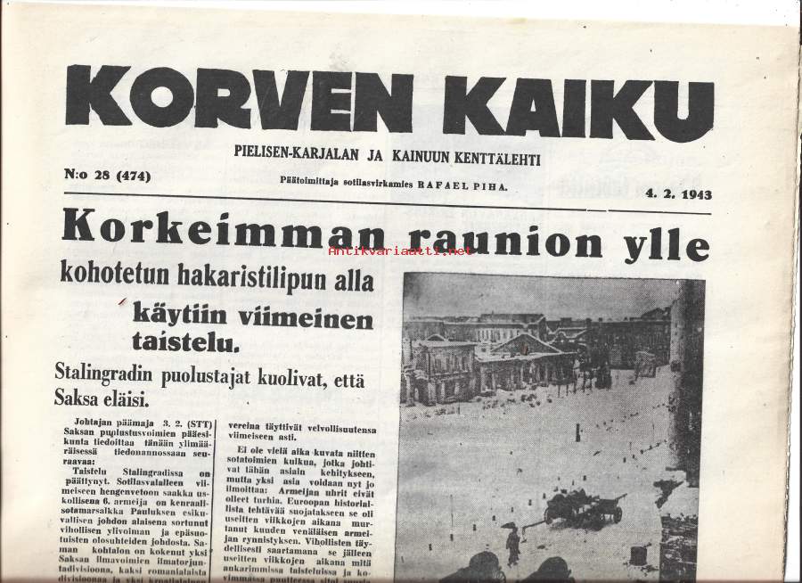 Korven Kaiku Pielisen-Karjalan ja Kainuun kenttälehti 4.2. 1943 nr 28