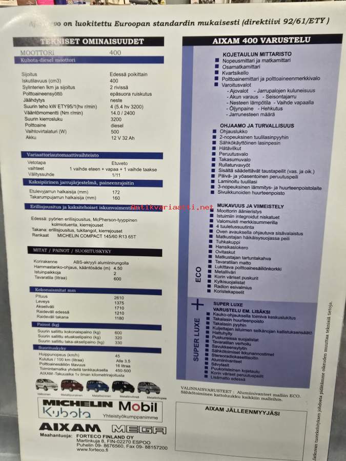Aixam Evolution 400 -myyntiesite / sales brochure