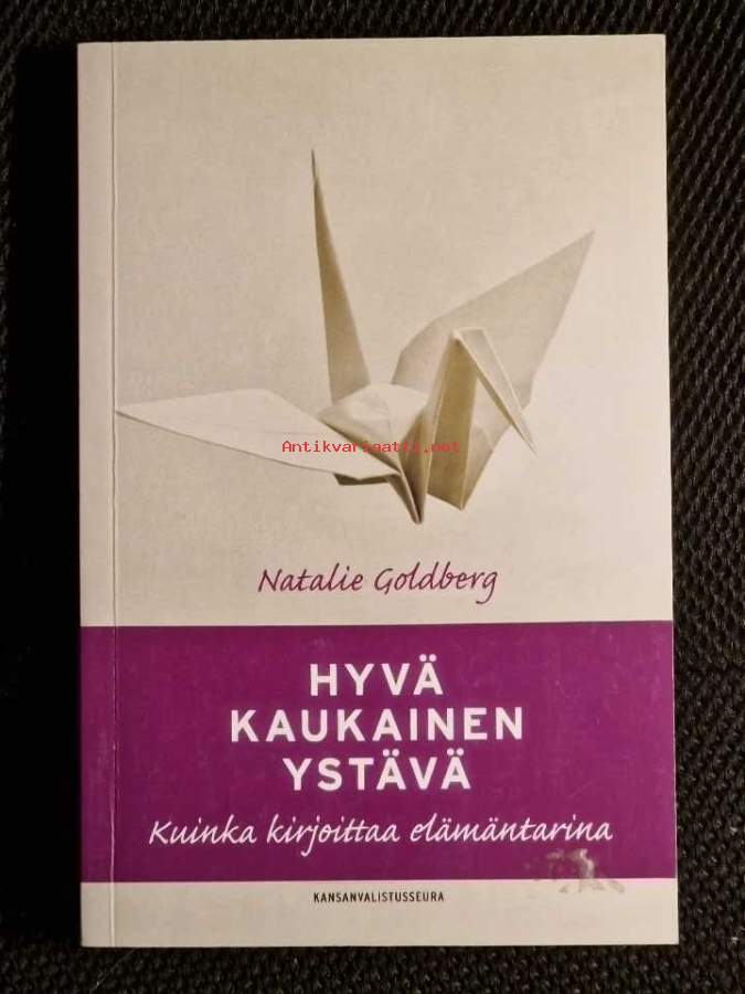 Kannessa jäämiä hintatarrasta. Kirjoittajan tärkein työkalu on oma mieli, Natalie Goldberg sanoo. Yksityiskohdat ja todelliset kokemukset tuovat elävyyttä kirjoitettuun sanaan. Suositun kirjoittajakouluttajan uusin teos Hyvä kaukainen ystävä (Old Friend from Far Away) auttaa houkuttelemaan esiin muistikuvia tilanteista, tunnelmista ja aistimuksista ja muovaamaan ne eläviksi sanoiksi, elämäntarinaksi ja muistelmiksi. Teos tarjoaa lukijalle välineitä ymmärtää omaa mieltään ja sisältä kumpuavaa halua kirjoittaa. Se sisältää inspiroivia harjoituksia elämäntarinan tai yleisemmin omasta kokemuksesta ammentavan tekstin kirjoittamiseen. VähemmänUlkoasu 336 sivua : kuvitettu ; 21 cmJulkaisija Helsinki : Kansanvalistusseura, 2011Luokitus Etiikka. Moraali. Käytännöllinen filosofia. Elämäntaito (udkf 17)Psykologia (udkf 159.9)Yleinen kirjallisuustiede. Kirjallisuudentutkimus (udkf 82)Elämänfilosofia. Elämäntaito (ykl 17.3)Persoonallisuuden psykologia (ykl 14.4)Kirjailijan työ (ykl 86.07) Aiheet kirjoittaminen luova kirjoittaminen muistelu omaelämäkerrallisuus itsetuntemus reflektio oppaat (teokset) Natalie Goldberg ; suomentanut Marja-Riitta VainikkalaISBN 978-951-9140-41-4 nidottu