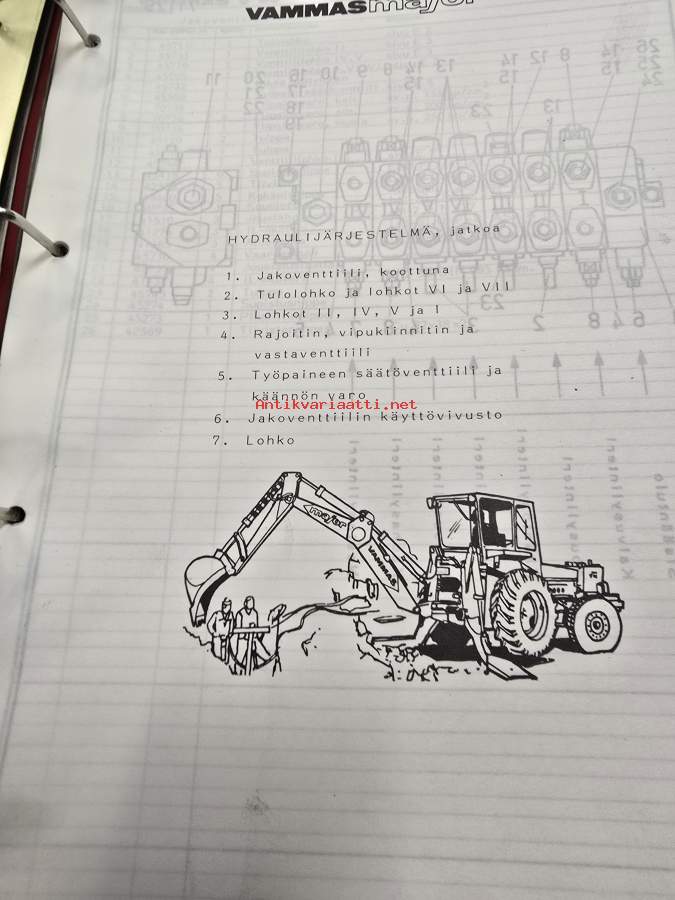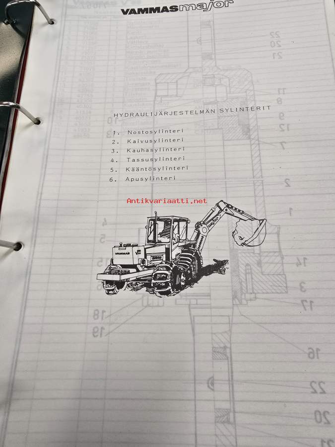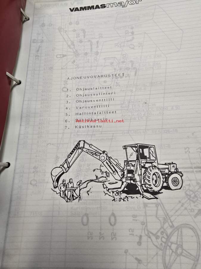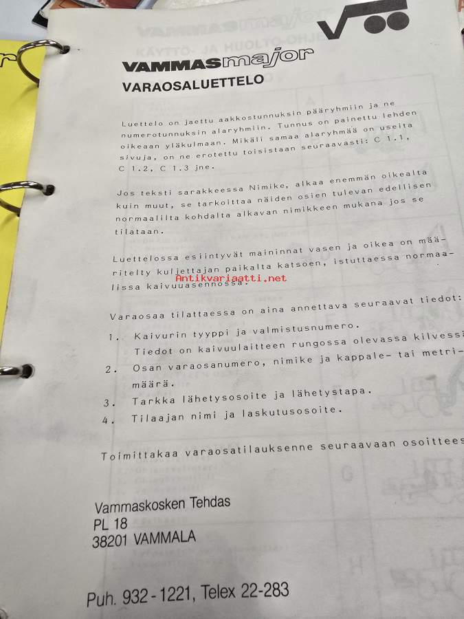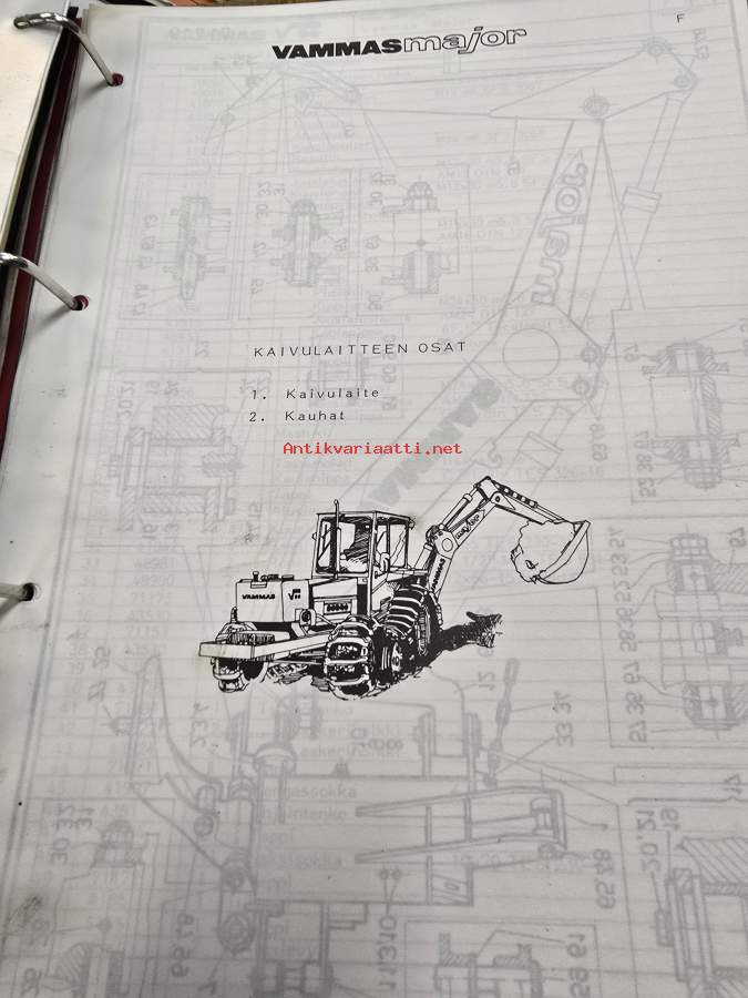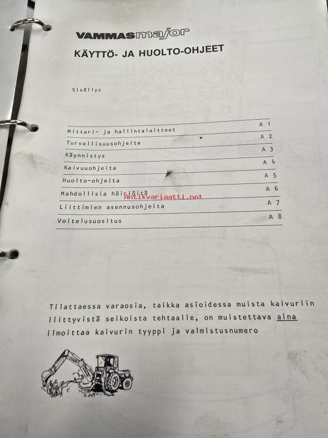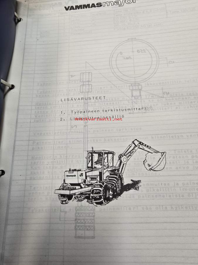 Vammas Major kaivurin varaosa-, käyttö- ja huoltoohjeet.