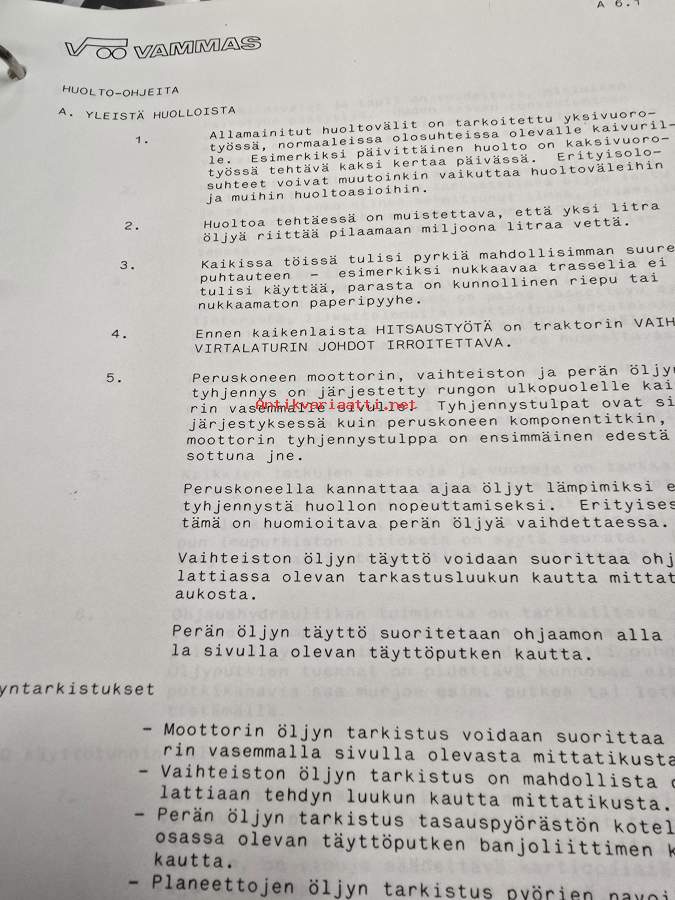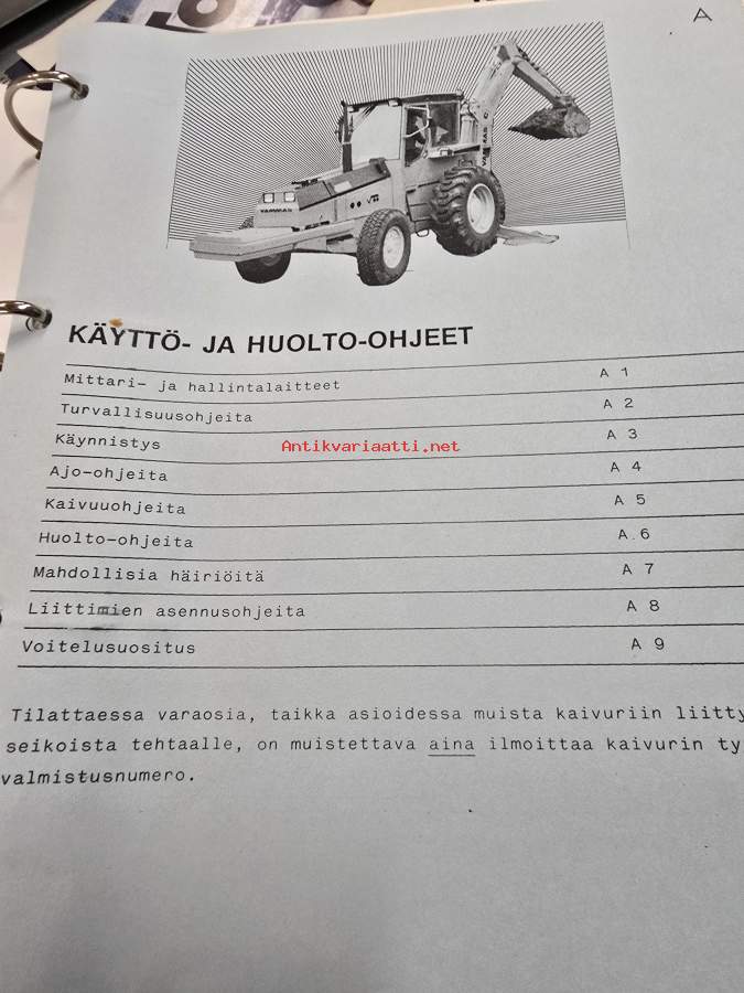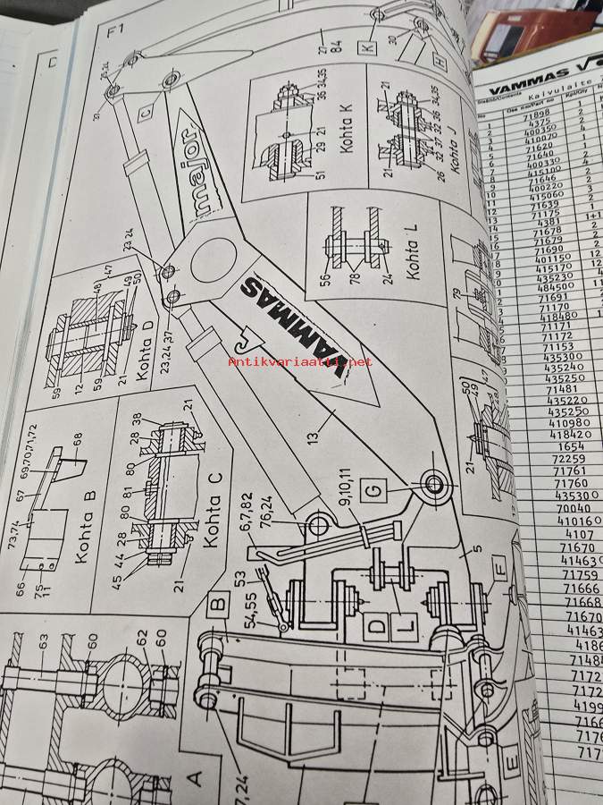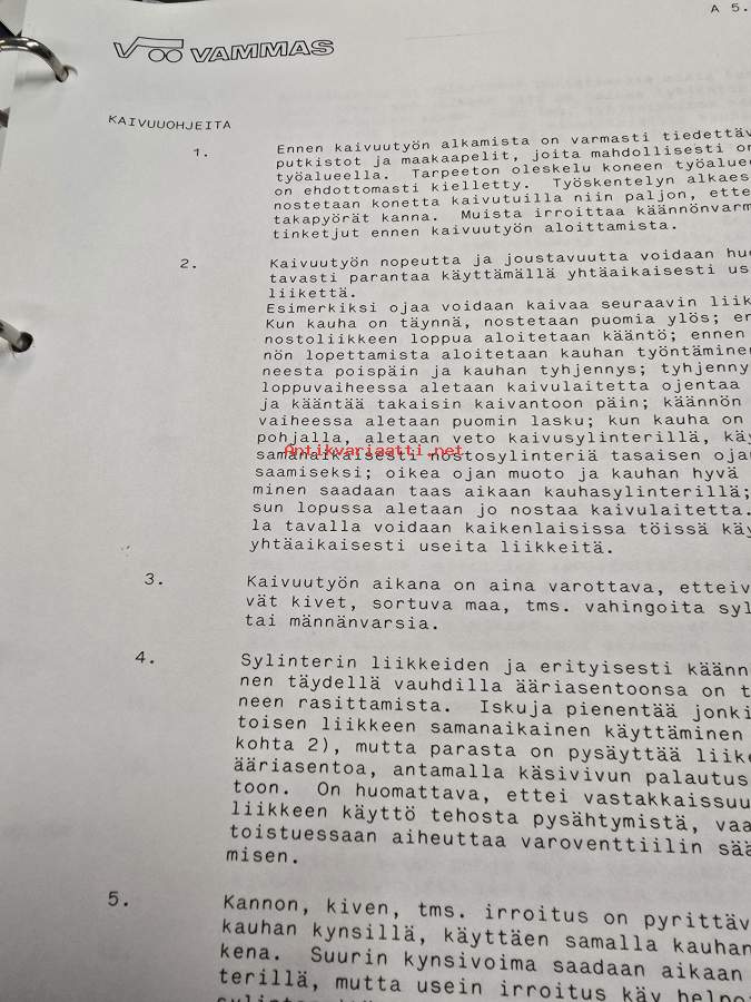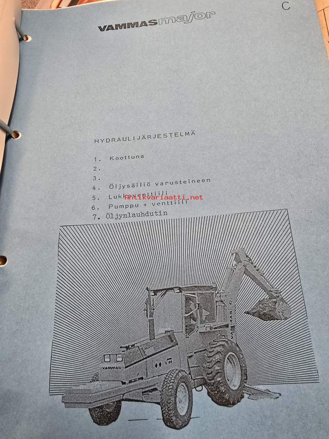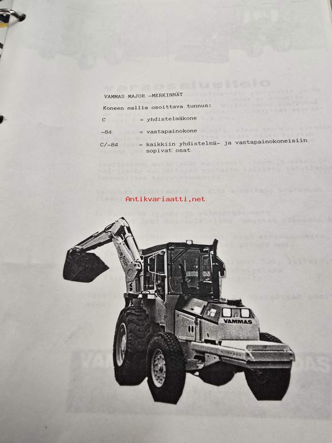Vammas Major kaivurin varaosa-, käyttö- ja huoltoohjeet.