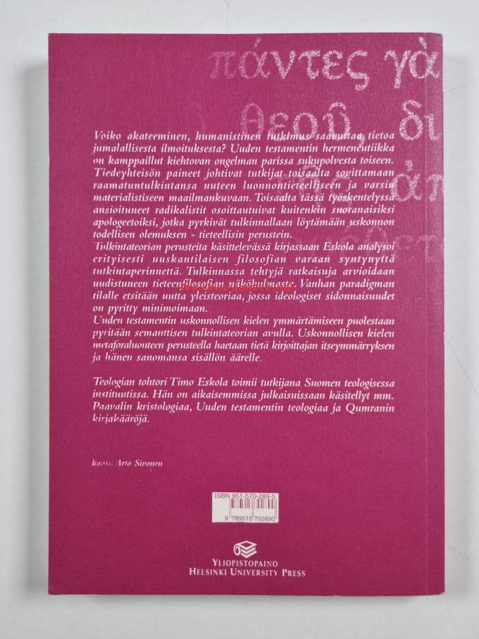 Asiasanat: raamatuntulkinta, eksegetiikka, hermeneutiikka