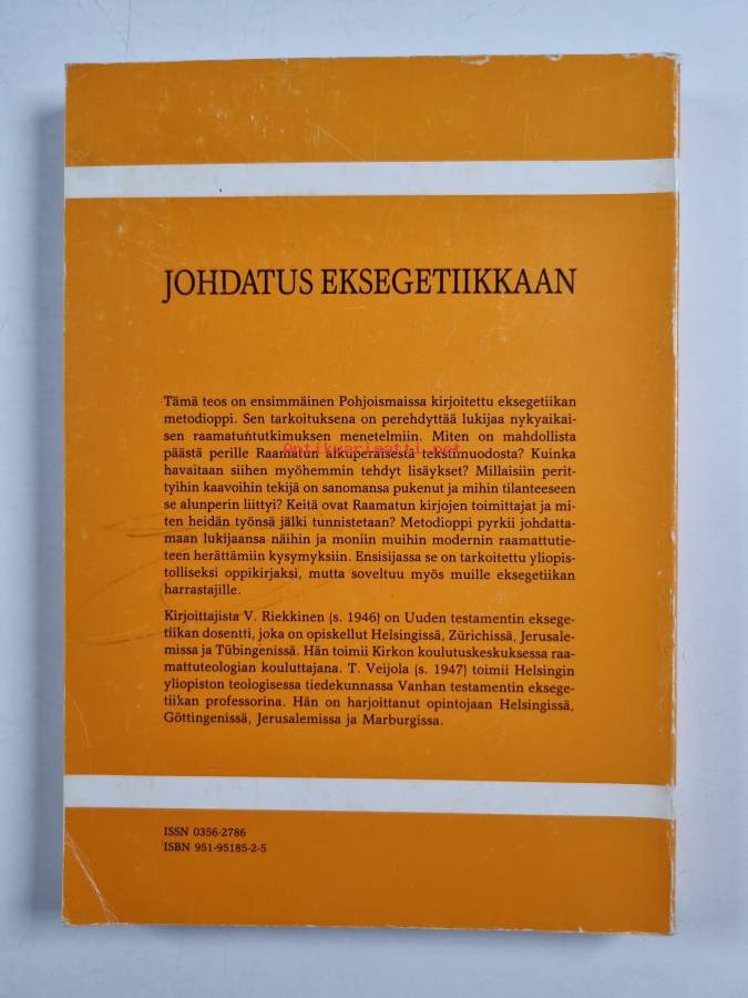 Muu(t) tekijä(t): Timo Veijola, Anne-Marit EnrothMerkinnät: omistajamerkintä leikattu pois etulehden ylälaidastaSarja: Suomen eksegeettisen seuran julkaisuja 374