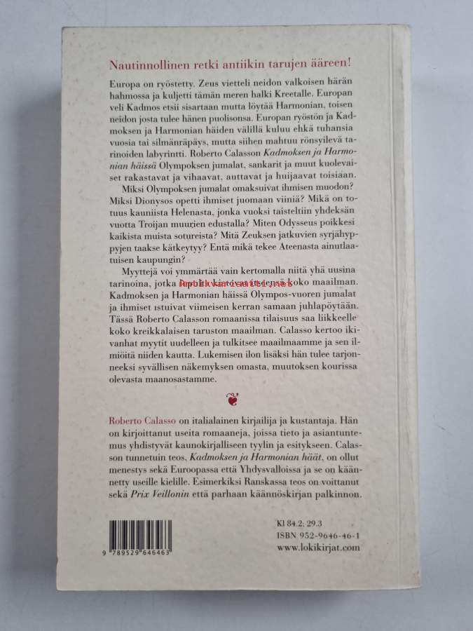 Muu(t) tekijä(t): Elina SuolahtiMerkinnät: omistajamerkintäAlkuteos: Le nozze di Cadmo e ArmoniaAsiasanat: antiikki, myytit, jumalat, mytologia antiikki