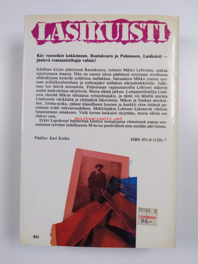 Hyvä. Tarkempi kuntoluokka: K3+ ; Hieman kulumaa reunoilla ja kulmissa, takana vanha hintalappu. Kansipaperin kunto: pientä kulumaa