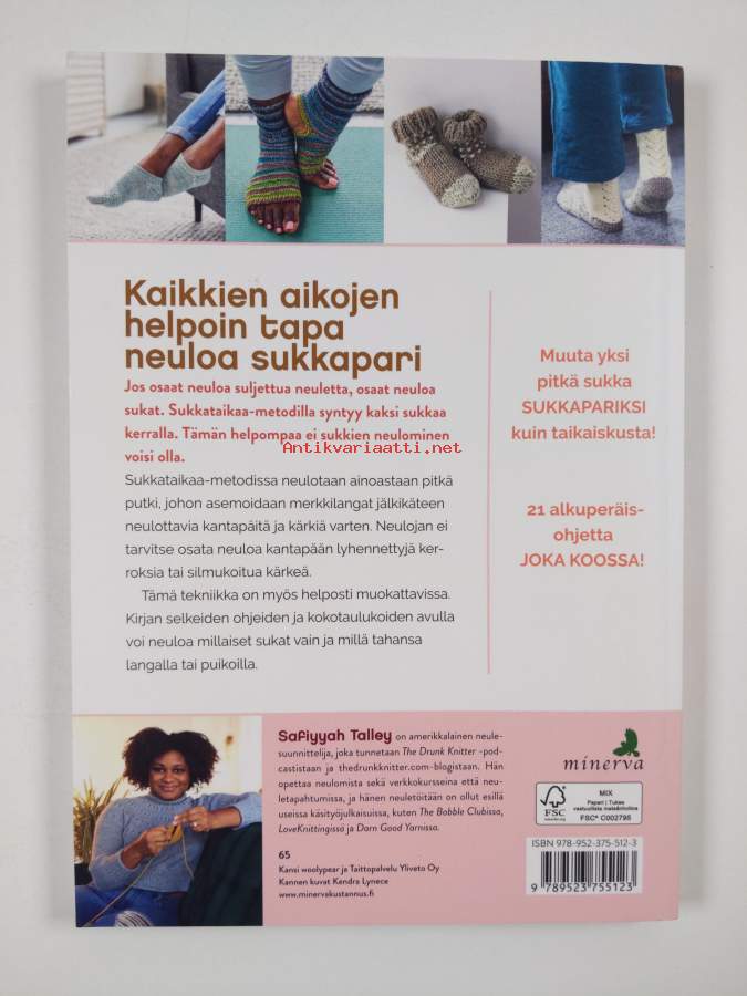 Muu(t) tekijä(t): Kristel (suom.) NybergAlkuteos: Knit 2 Socks in 1: Discover the Easy Magic of Turning One Long Sock into a Pair! Choose from 21 Original DesignsAsiasanat: käsityöt, neulonta, neuletyöt, sukat