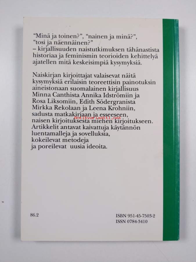 Muu(t) tekijä(t): Tuula HökkäSarja: Helsingin yliopiston kotimaisen kirjallisuuden laitoksen julkaisuja 8Asiasanat: kirjallisuudentutkimus, kirjallisuus, naistutkimus, feminismi, naiskirjallisuus