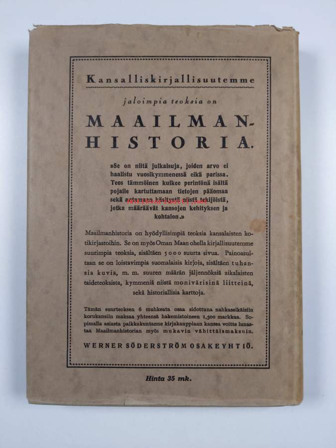 Muu(t) tekijä(t): O. A. ForsströmMerkinnät: omistajamerkintä & exlibris: Kauko KulaAsiasanat: historia, kulttuurihistoria, antiikki, ammattikuntalaitos, kaupungit, kristinusko, kirkkohistoria, taidehistoria, keskiaika, ristiretket, läänityslaitos, renessanssi, oikeuslaitos, ritarilaitos, munkit (uskonto), kansainvaellusaika