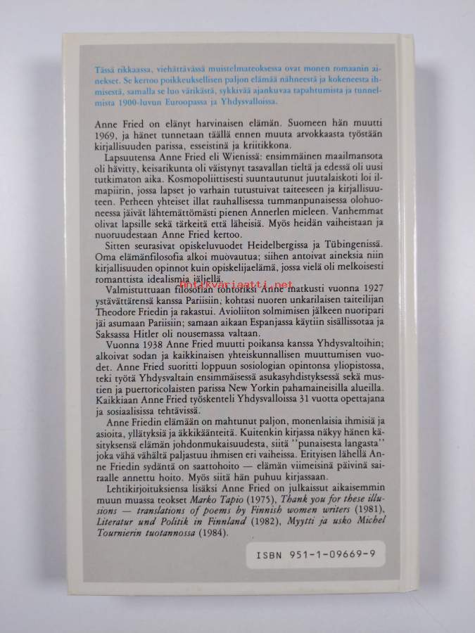 Muu(t) tekijä(t): Oili Suominen, Annikki SuniAsiasanat: muistelmat