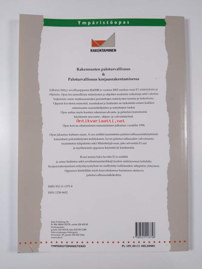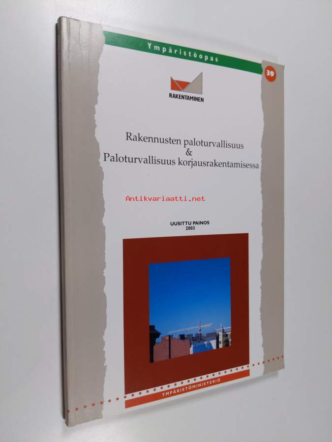 Muu(t) tekijä(t): Timo Kauppinen, Marja Heikilä-KauppinenSarja: Ympäristöopas 39Asiasanat: palontorjunta, rakentaminen, rakennukset, sammutus, paloturvallisuus, korjausrakentaminen, rakennusohjeet, kaavoitus, valvonta, peruskorjaus, rakentamismääräykset, kaavoitus (maankäyttö), paloluokitukset