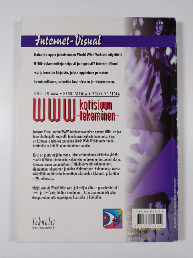 Muu(t) tekijä(t): Pekka Veistola, Henri SirolaSarja: Internet-visualAsiasanat: Internet, elektroniset julkaisut, suunnittelu, WWW, multimedia, ohjelmointikielet, kuvauskielet, HTML, JavaScript, VRML, kotisivut