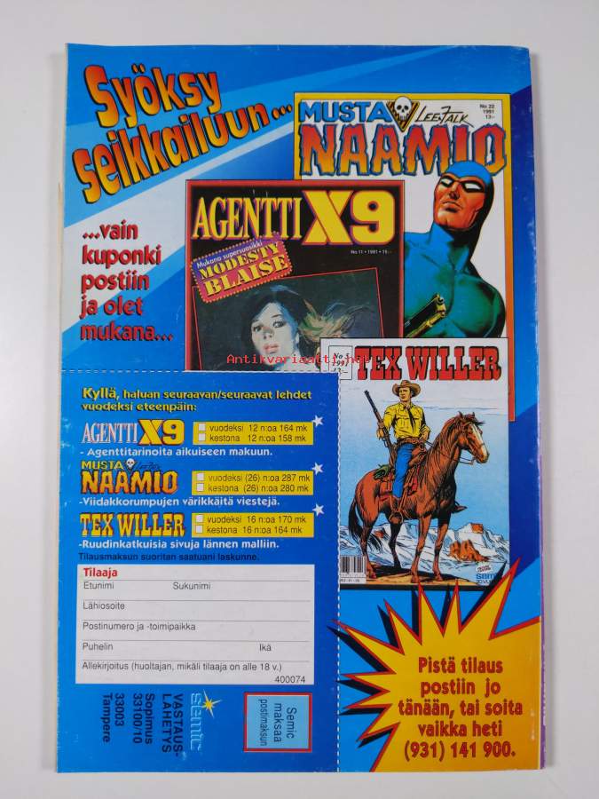 Hamsteri sarjakirja Agentti X) n.o 63 P. 1981