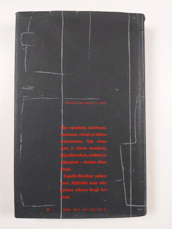 Hyvä. Tarkempi kuntoluokka: K3+ ; Pienoista kulumaa kansissa, selkämyksessä hieman vinoutta