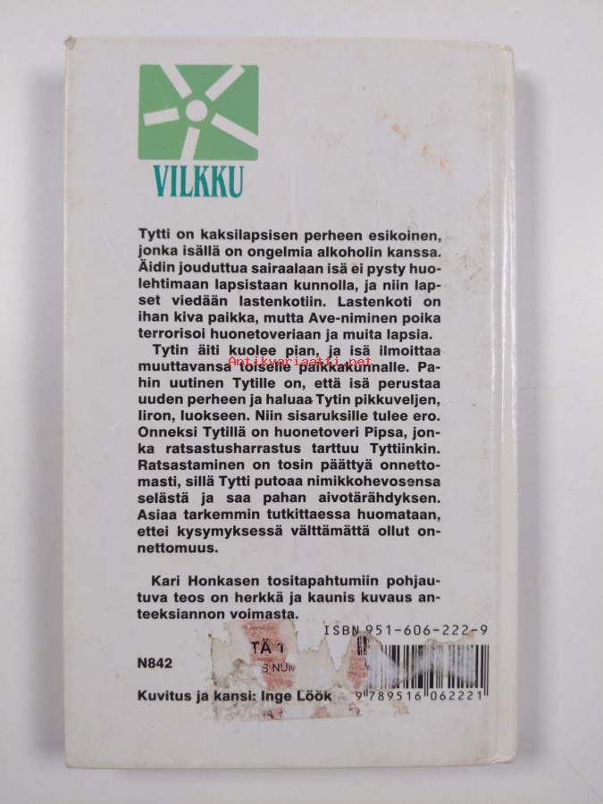 Hyvä. Hieman kulumaa reunoilla ja kulmissa, hieman nuhruisuutta, selkämyksessä hieman vinoutta, edessä hintalapun jäämää