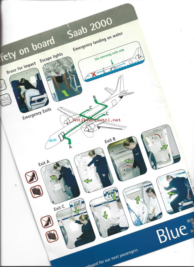 Safety on Board / Turvaohjeet SAAB 2000 muovia 2-puoleinen n A4 koko