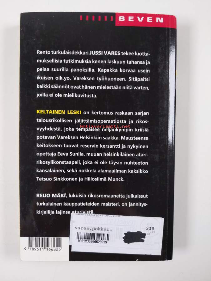 Hyvä. Hieman kulumaa kansissa, pienoista rispaantumaa reunoilla ja kulmissa, pienoista taitejälkeä reunoilla ja kulmissa, takana vanha hintalappu