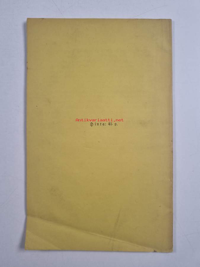 Hyvä. Pienoista rispaantumaa reunoilla ja kulmissa, hieman taitejälkeä takakannessa. teksti fraktuuraa