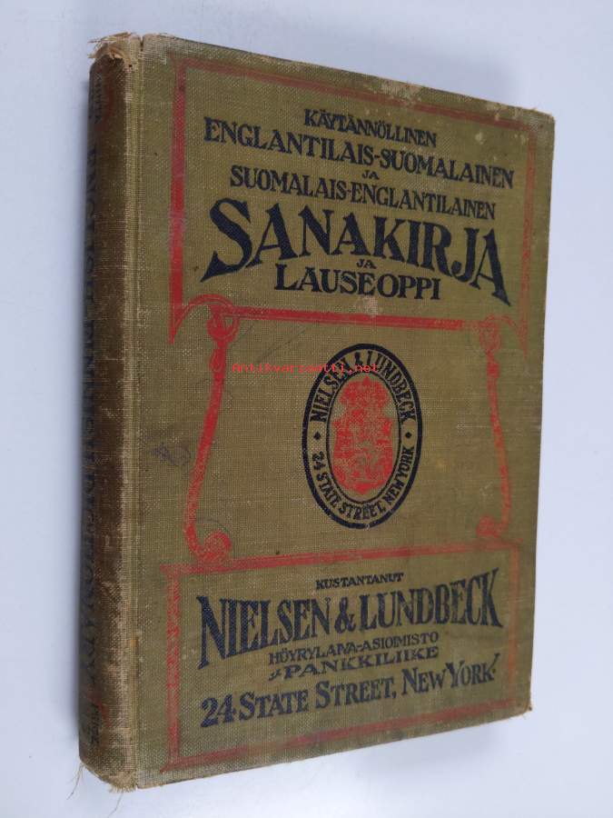 Käytännöllinen englantilais-suomalainen ja suomalais-englantilainen sanakirja ja lauseoppi, 1911. Kustantanut Nielsen & Lundbeck, Suomalainen pankkiiriliike