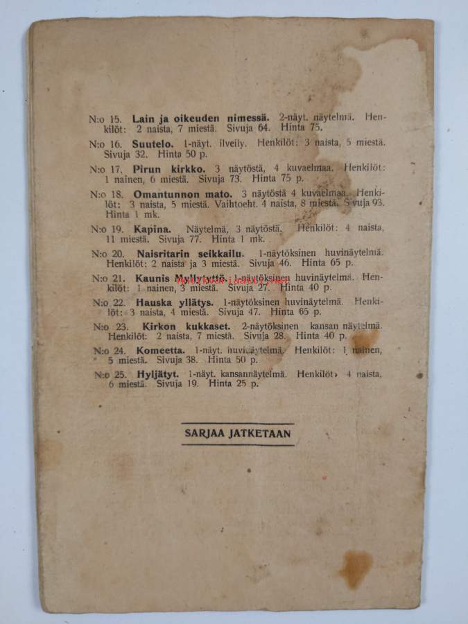 Merkinnät: omistajamerkintäSarja: Työväen näytelmäkirjasto 23