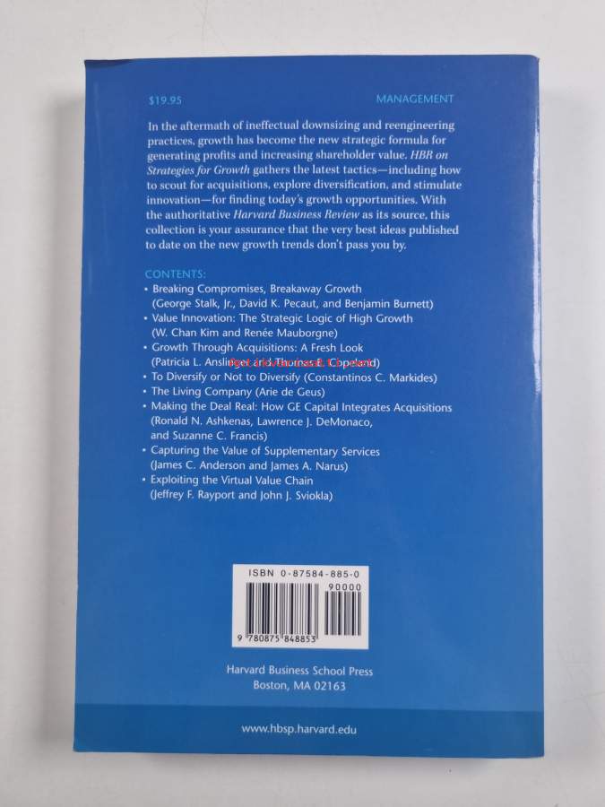 Sarja: The Harvard business review paperback seriesAsiasanat: yritykset, yritystoiminta, yritysstrategiat, yhtiöt, yrityskaupat, hankinta, laajeneminen, strateginen johtaminen, kasvu, arvo, strategiat, arvo (ominaisuudet)