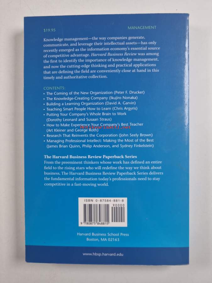 Sarja: Harvard business review paperbackAsiasanat: yritykset, johtaminen, kehittäminen, tieto, organisaatiot, osaaminen, oppiva organisaatio, tietämyksenhallinta