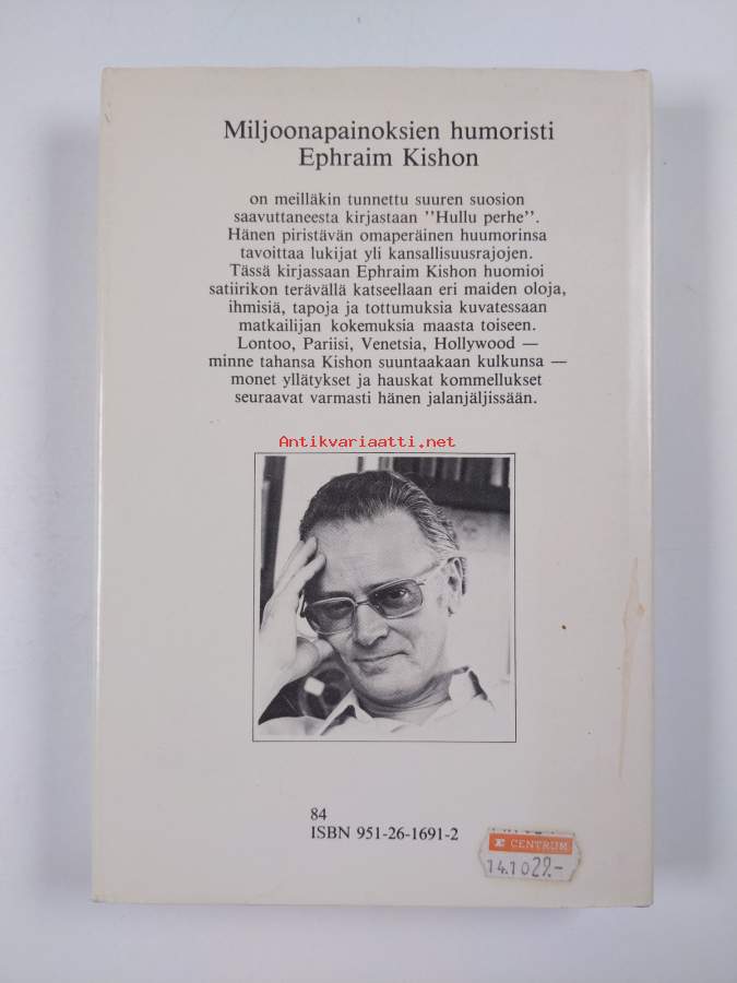 Hyvä. Pienoista kulumaa kansissa, selkämyksessä hieman vinoutta, takana vanha hintalappu. Kansipaperin kunto: jonkin verran kulumaa/pienoisia repeämiä