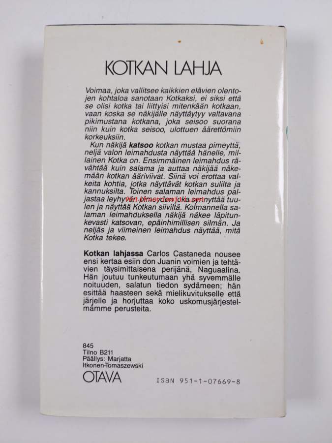 Hyvä. Pienoista kulumaa kansissa, pienoista kolhua kulmissa, selkämyksessä aavistus vinoutta. Kansipaperin kunto: jonkin verran kulumaa/pienoisia repeämiä / sivujen syrjällä aivan pienoinen läikkä