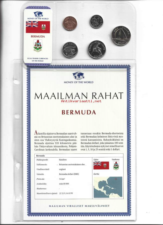 Bermuda 1,5,10 ja 25 cents, ! dollar 5 kpl rahasarja 2000 -2009 ulkomainen kolikko