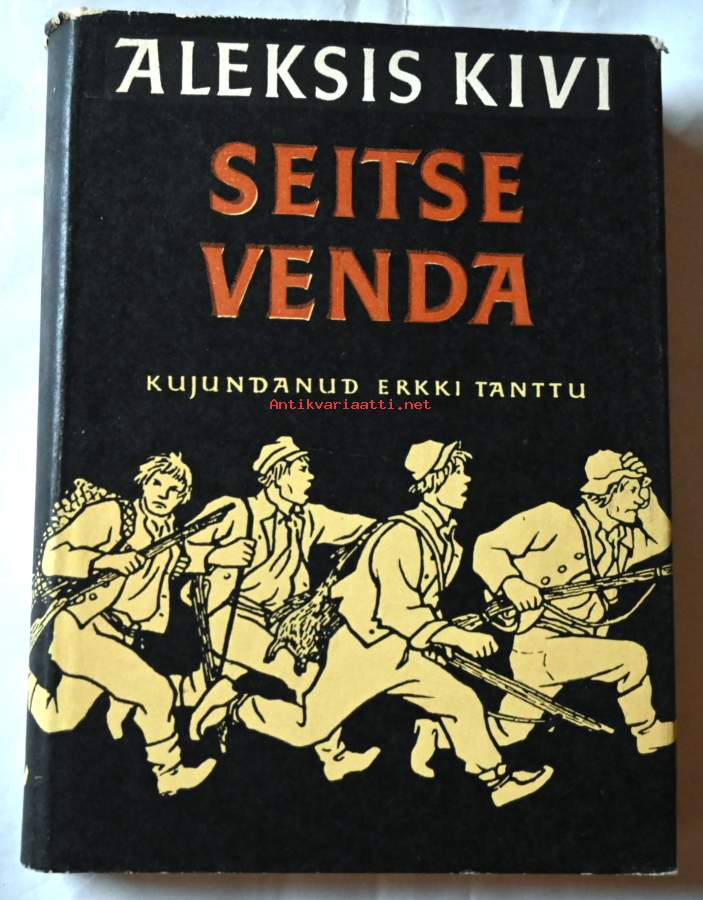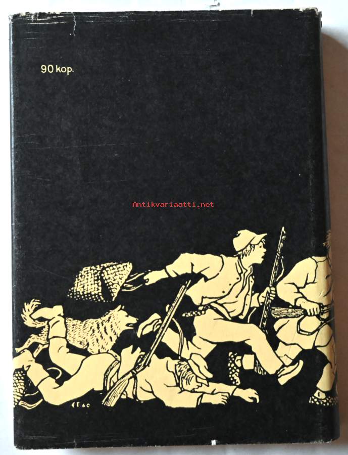 Seitse Venda - A. Gallen-Kallela illustratsioonit, kolmas trükk 1942 (Seitsemän veljestä eestin kielellä), huomaa takakanteen painettu Rmk 3,75 hinta