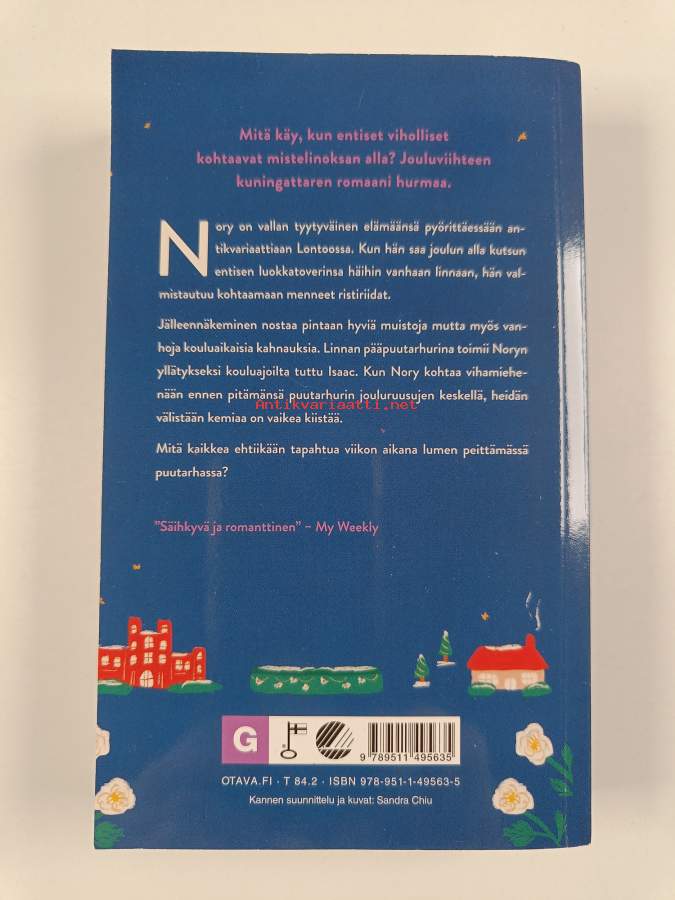 Alkuteos: Meet Me Under the MistletoeAsiasanat: joulu, kaunokirjallisuus, rakkaus, yhteiskuntaluokat, romantiikka, kirjakaupat, talvi, viihdekirjallisuus, pikkukaupungit, Britannia