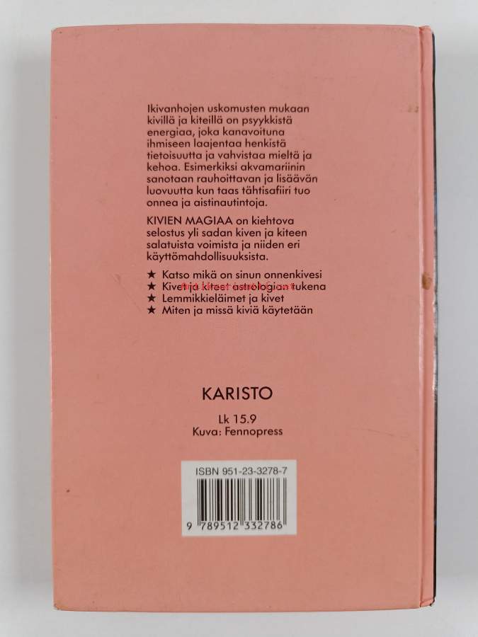 Muu(t) tekijä(t): Eero (suom.) MänttäriMerkinnät: omistajamerkintäAlkuteos: The crystal handbookAsiasanat: uskomukset, jalokivet, jalokiviterapia, korukivet