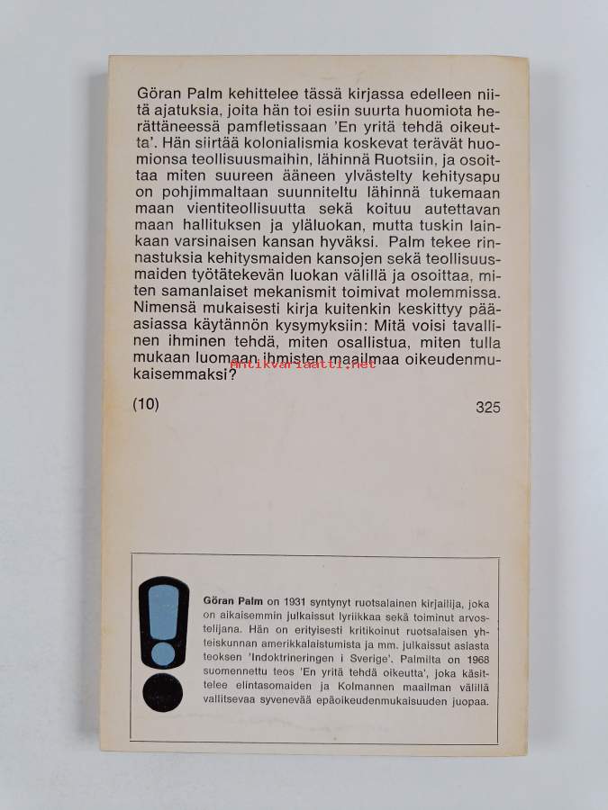 Muu(t) tekijä(t): Risto HannulaSarja: Huutomerkki-sarja [29Alkuteos: Vad kan man göra?Asiasanat: kansainvälinen politiikka, kolonialismi, kehitysyhteistyö, kehitysmaapolitiikka
