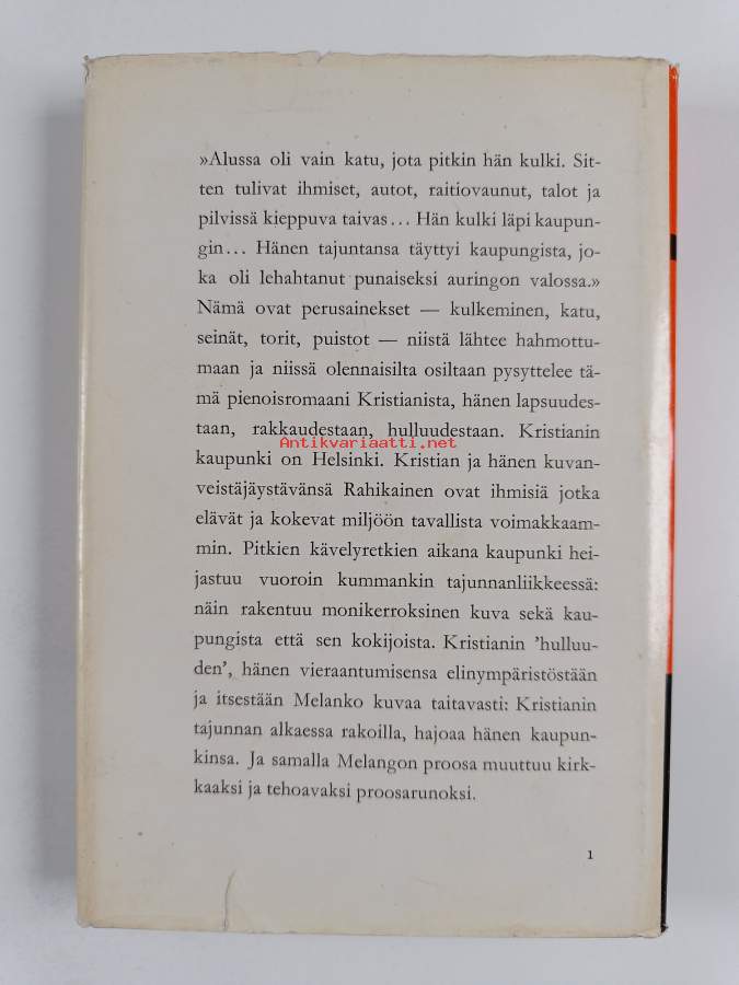 Hyvä. Tarkempi kuntoluokka: K3- ; Pienoista tahraisuutta kansissa, hieman kulumaa kansissa, sivuilla joitain merkintöjä. Kansipaperin kunto: repeämiä/kulumaa / etukannen sisäpuolelle teipattu lehtileike, esilehdellä teipistä jäänyttä liimajäämää