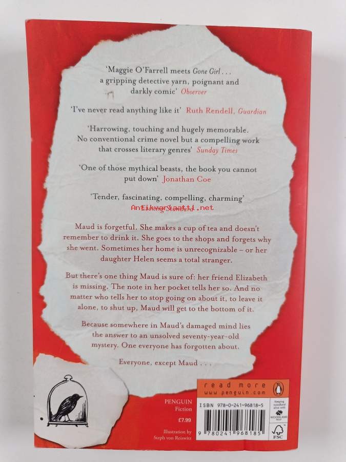 Asiasanat: kaunokirjallisuus, vanhukset, romaanit, muistisairaudet, katoaminen, mysteerit, siskot, esikoisteokset, psykologinen jännityskirjallisuus