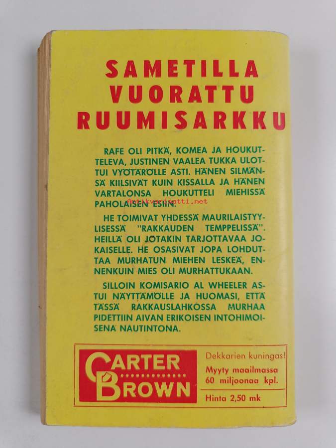 Muu(t) tekijä(t): Tapio HiisivaaraMerkinnät: omistajamerkintäSarja: Carter Brown 104Alkuteos: The plush-lined coffin