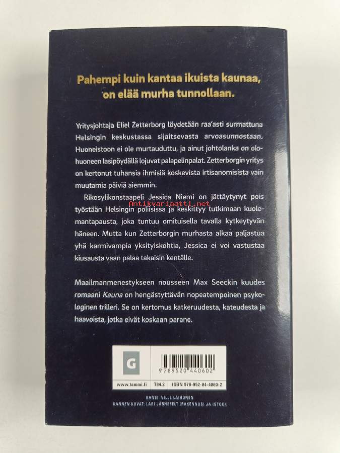 Kauna/ Max Seeck. P.2021.Yritysjohtaja löydetään murhattuna asunnostaan.Murron jälkiä ei ole. Saako poliisi selvitetyksi. Psykologinen trilleri.