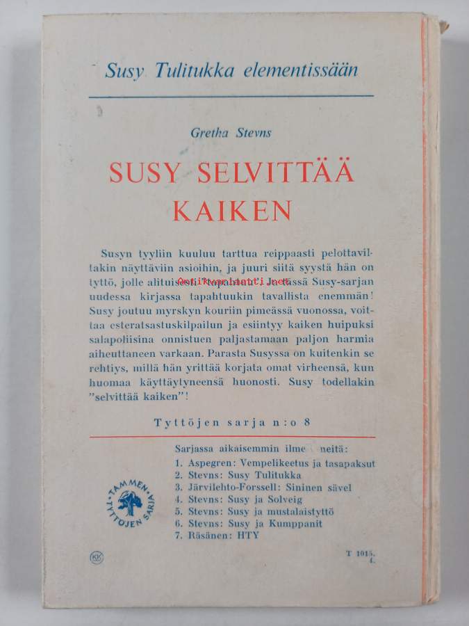 Muu(t) tekijä(t): Lea KarvonenMerkinnät: omistajamerkintäSarja: Tammen tyttöjen sarja 8Alkuteos: Susy, hun kan