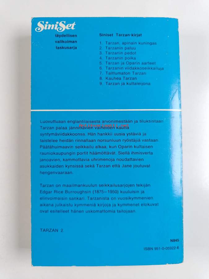 Muu(t) tekijä(t): Seppo IlmariSarja: Tarzankirjat 2 ; Siniset 128Alkuteos: The return of Tarzan