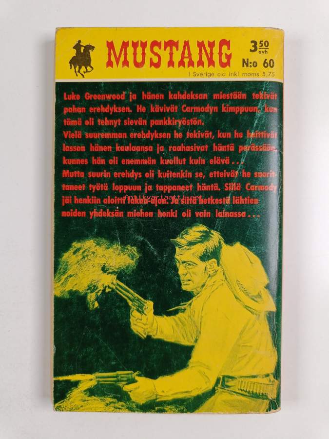 Muu(t) tekijä(t): U MaajärviSarja: Mustang 60Alkuteos: Carmody - tall man ridingAsiasanat: Western, lännenpokkarit
