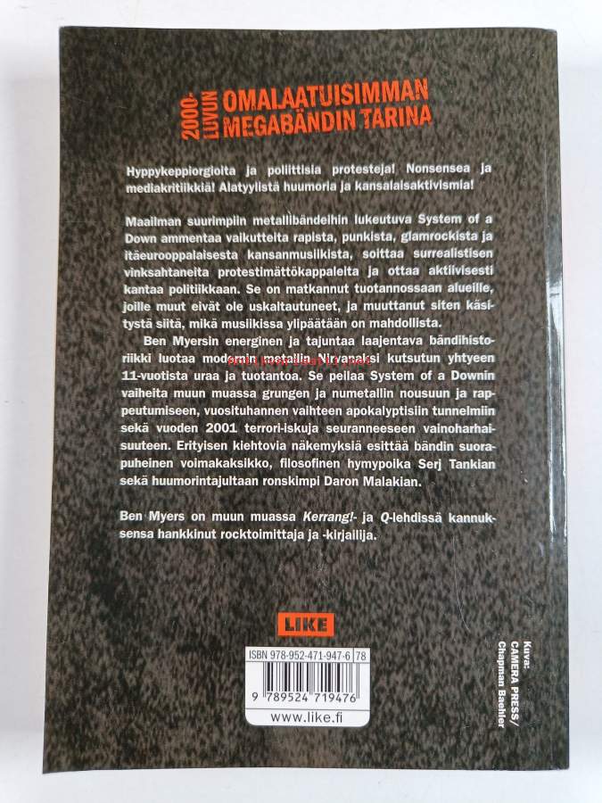 Muu(t) tekijä(t): Ilkka (suom.) SalmenpohjaAlkuteos: System of a Down : right here in HollywoodAsiasanat: elämäkerrat, muusikot, heavy rock, rock