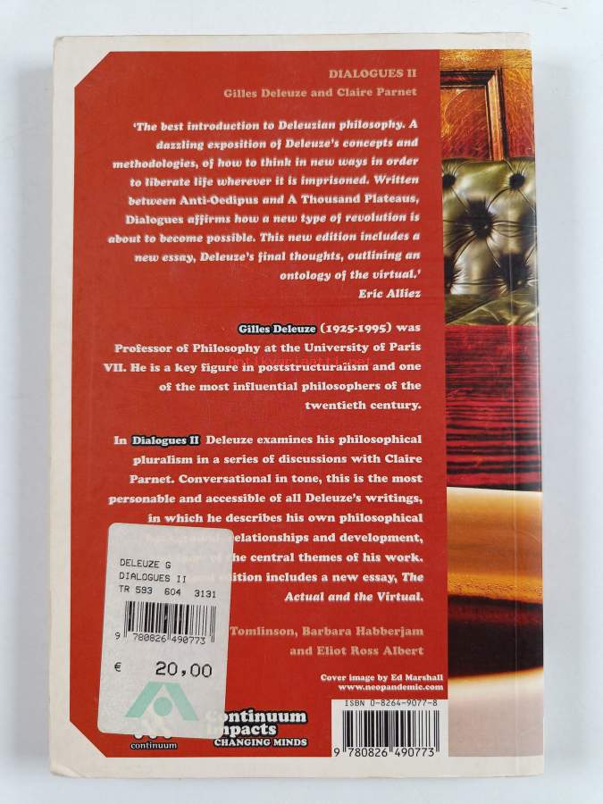 Muu(t) tekijä(t): Claire Parnet, Hugh Tomlinson ym.Alkuteos: DialoguesAsiasanat: filosofia, estetiikka, psykoanalyysi