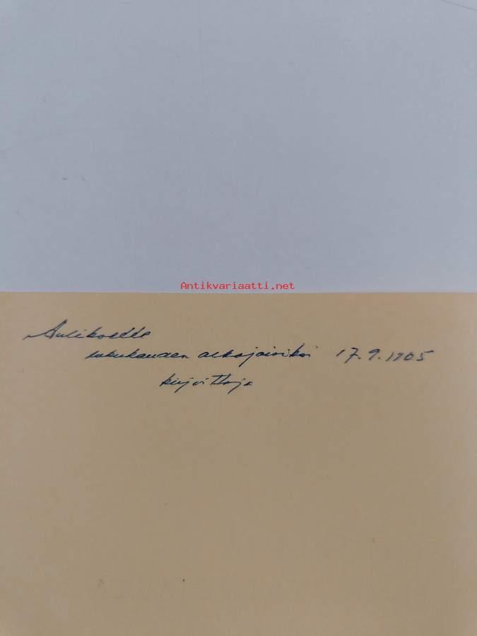 Erinomainen. Tarkempi kuntoluokka: K4- ; Pienoista käytön jälkeä. tekijän omiste, signeerattu "kirjoittaja"