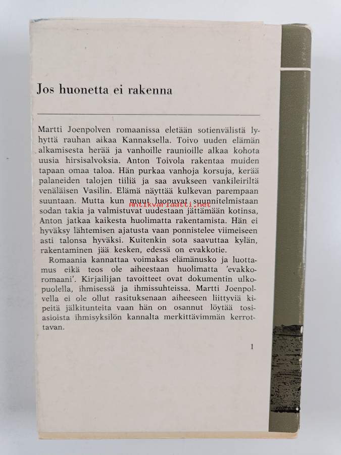 Hyvä. Pientä kulumaa kansissa, pienoista kolhua selkämyksen päissä, aivan pienoista repeämää selkämyksen päissä, selkämyksessä vinoutta, selkämyksessä lukutaittumaa. Kansipaperin kunto: repeämiä/kulumaa