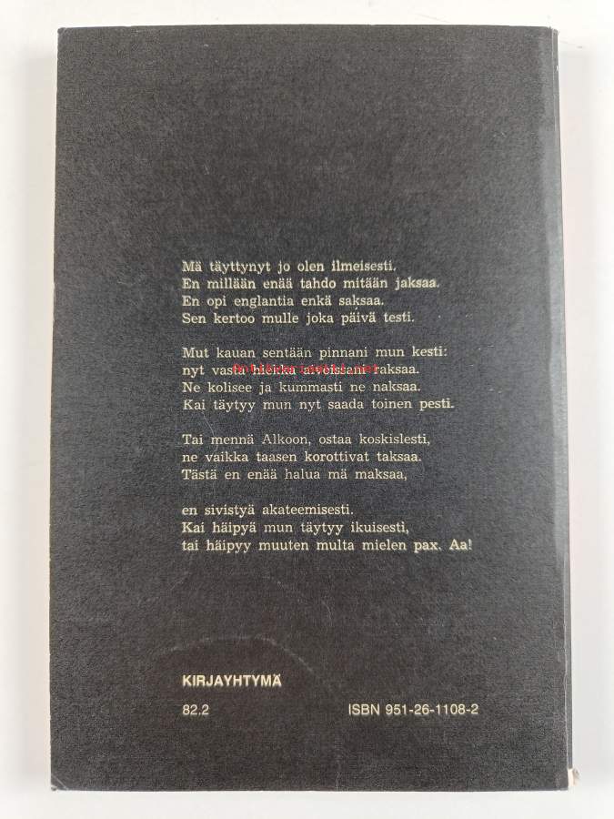 Hyvä. Tarkempi kuntoluokka: K3- ; Hieman kulumaa, hieman repeämää selkämyksen alapäässä, pienoista tahraisuutta