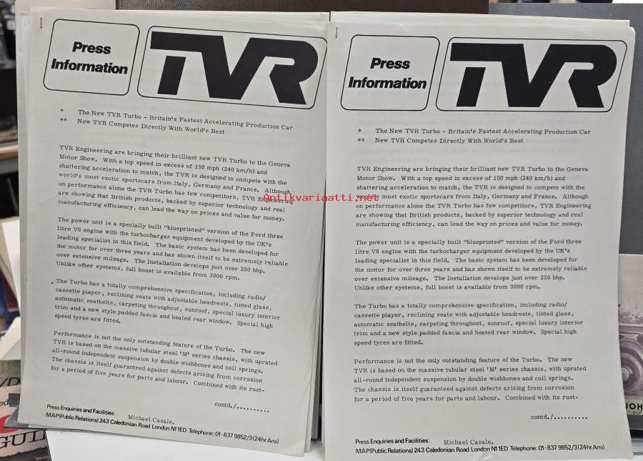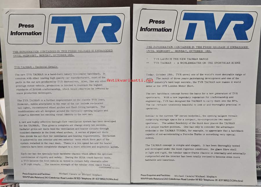 Harvinainen julkaisu. Geneve 11,3,1976. Autoa valmistettiin 30 kpl.