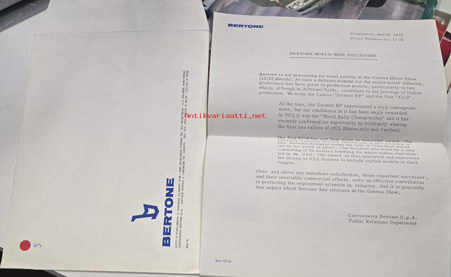 Bertone mallit Lancia stratos HF ja Fiat X 1/9.