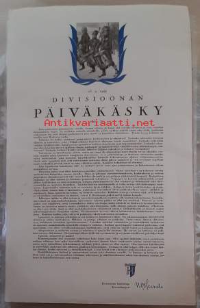 Divisioonan komentaja Kenraaliluutnantti Hersalon mustekynä allekirjoitus