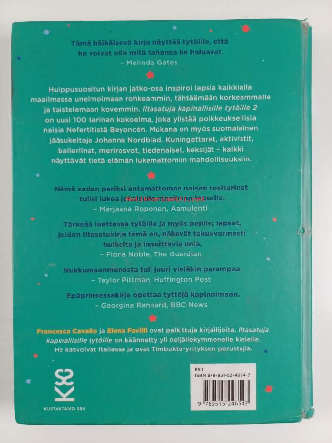 Muu(t) tekijä(t): Maija Kauhanen, Francesca CavalloAlkuteos: Good night stories for rebel girls 2Asiasanat: naiset, julkisuuden henkilöt, merkkihenkilöt, yhteiskunnalliset vaikuttajat
