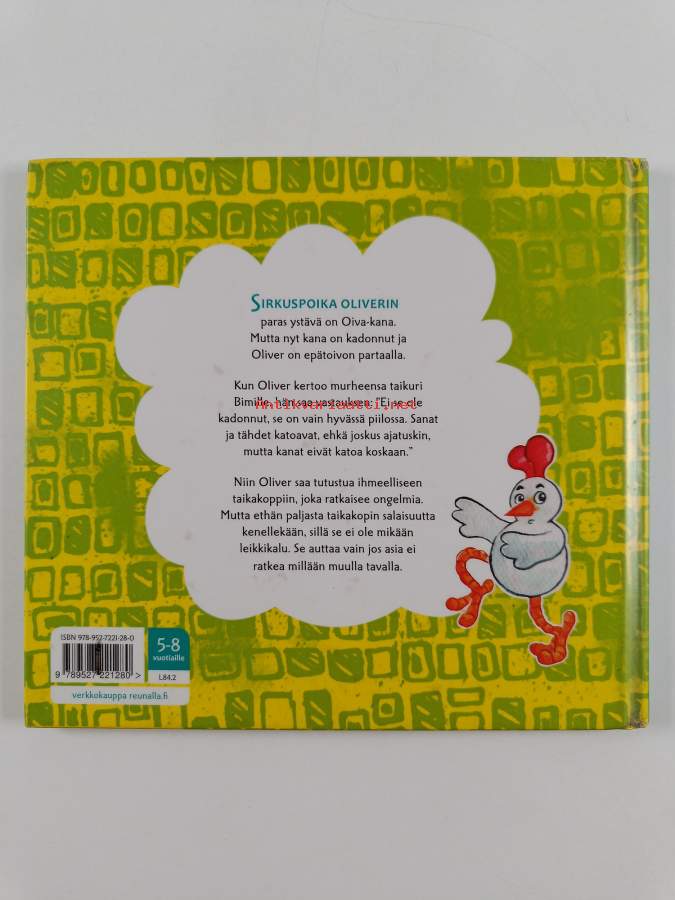 Muu(t) tekijä(t): Veera MiettinenSarja: Sirkuspoika Oliver ensimmäinen kirjaAsiasanat: suomen kieli, lastenkirjallisuus, kana, sirkus, suomenkielinen kirjallisuus, taikurit, taiat, kadonneet, kuvakirjat